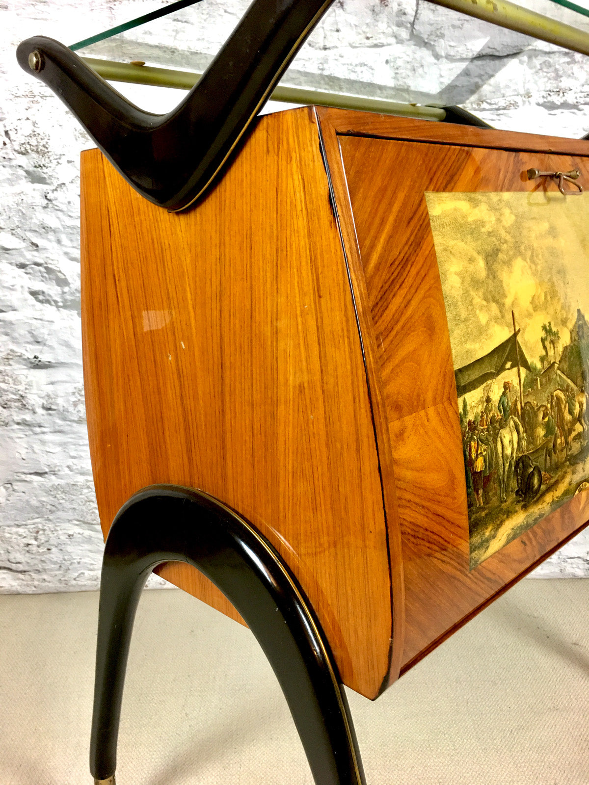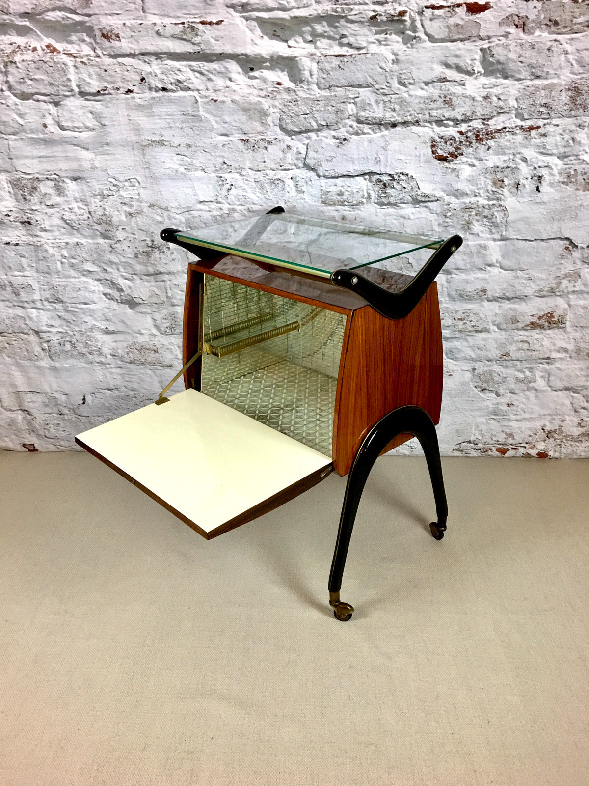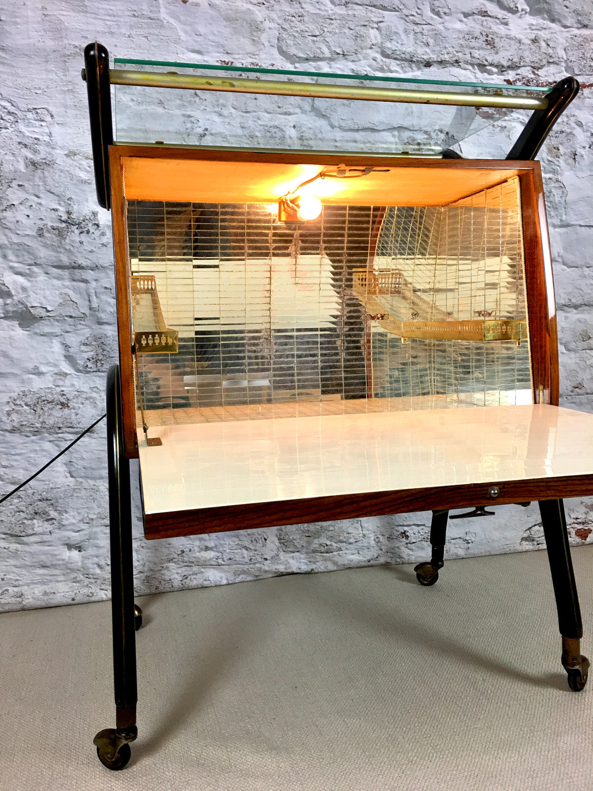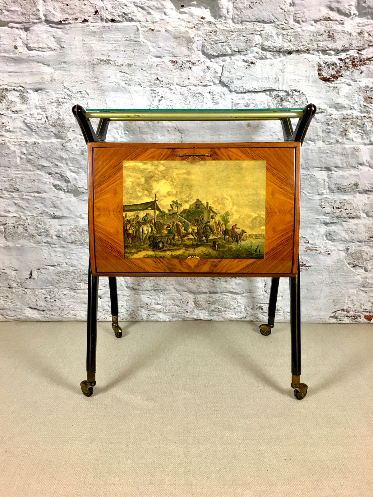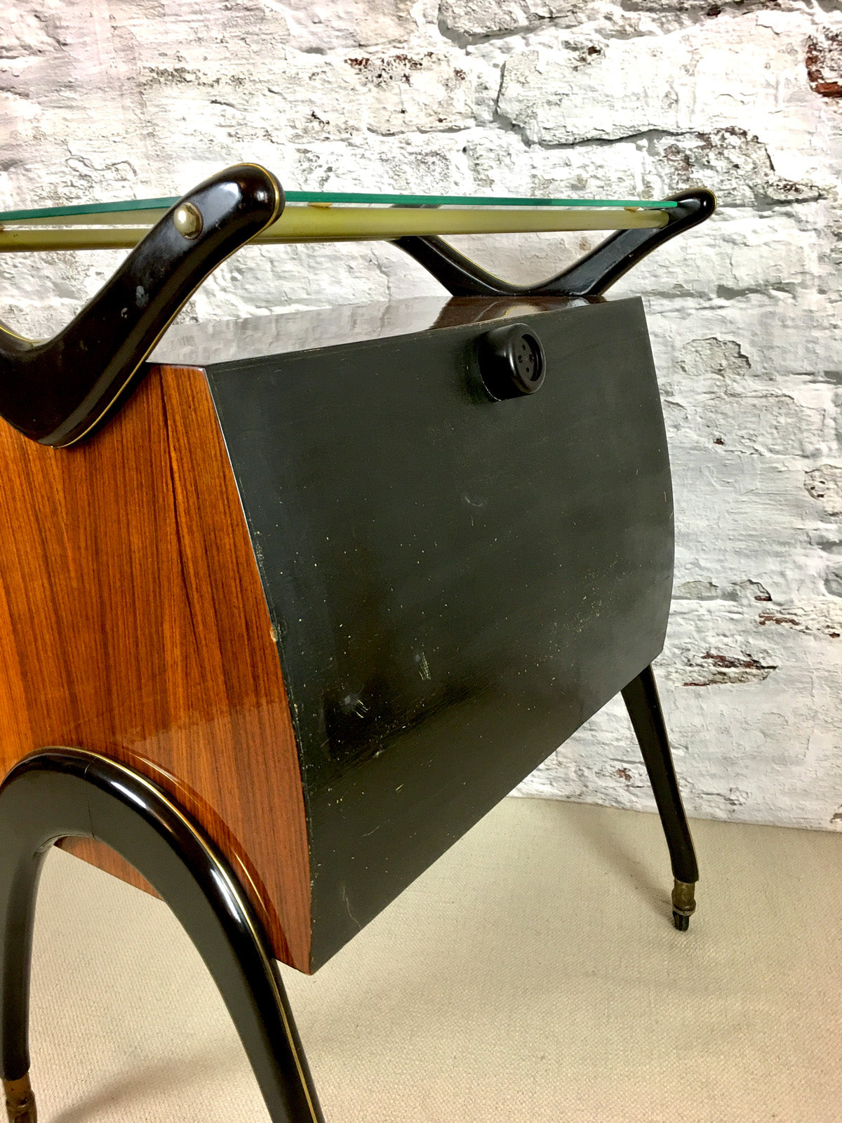 Cesare Lacca war ein italienischer Architekt und Designer, der für seine außergewöhnlichen Barwagen und die kunstfertige Verarbeitung von Messing bekannt wurde. Seine eleganten Messing Arbeiten sind unter Sammlern hoch gefragt und hauptsächlich aus der Zeit um 1950/60. Sein berühmtester Teewagen wurde von Cassina produziert, Arredoluce versorgte er jedoch auch mit seinen Entwürfen. Leider ist nicht bekannt, wie sich seine Karriere ab den 1960er Jahren entwickelte. Heute wird Lacca für seinen Beitrag zur italienischen Designidentität hoch geschätzt.