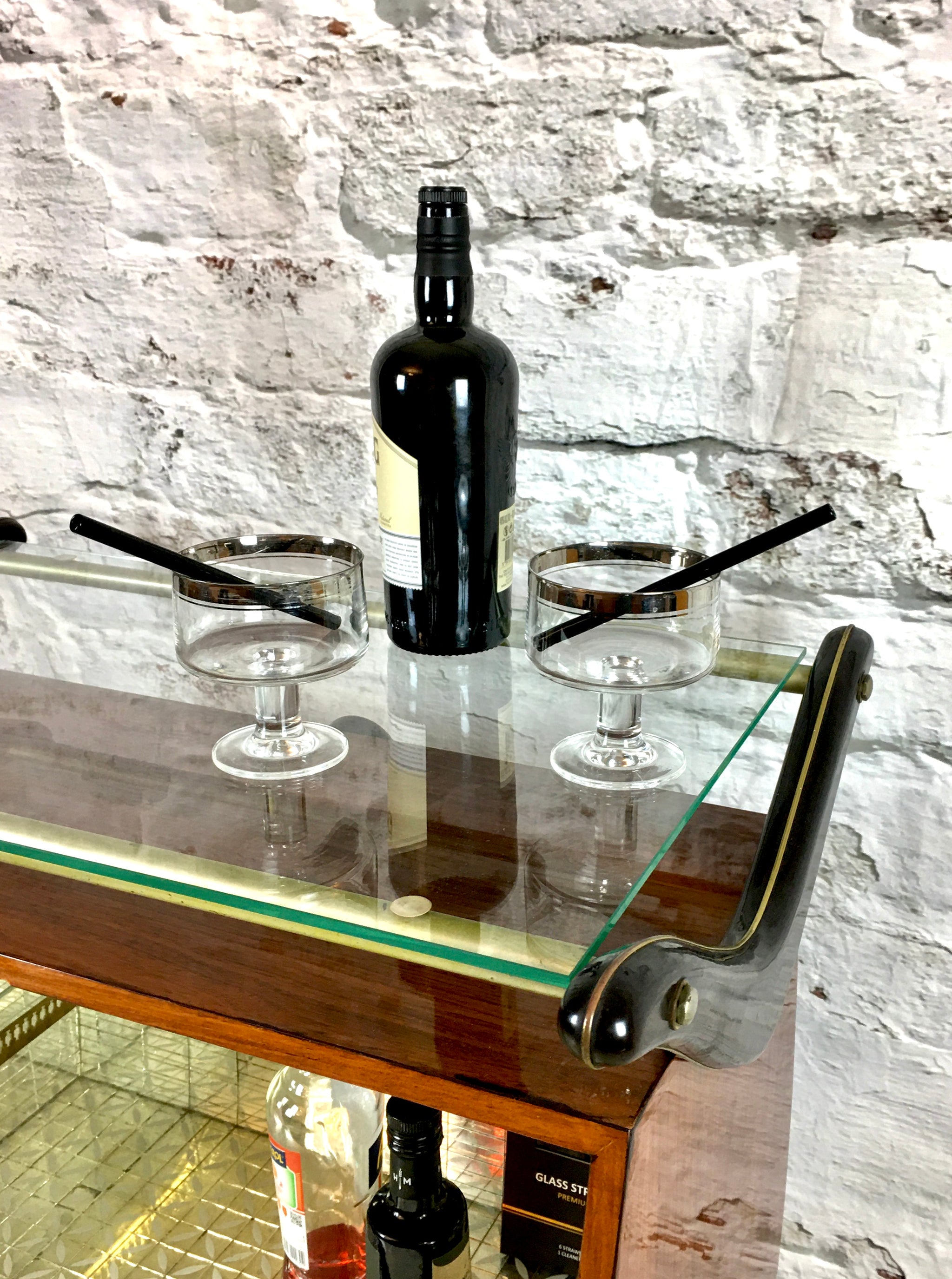 Material Messing, Glas, ebonisiertes Hartholz, Teakfurnier, Lack