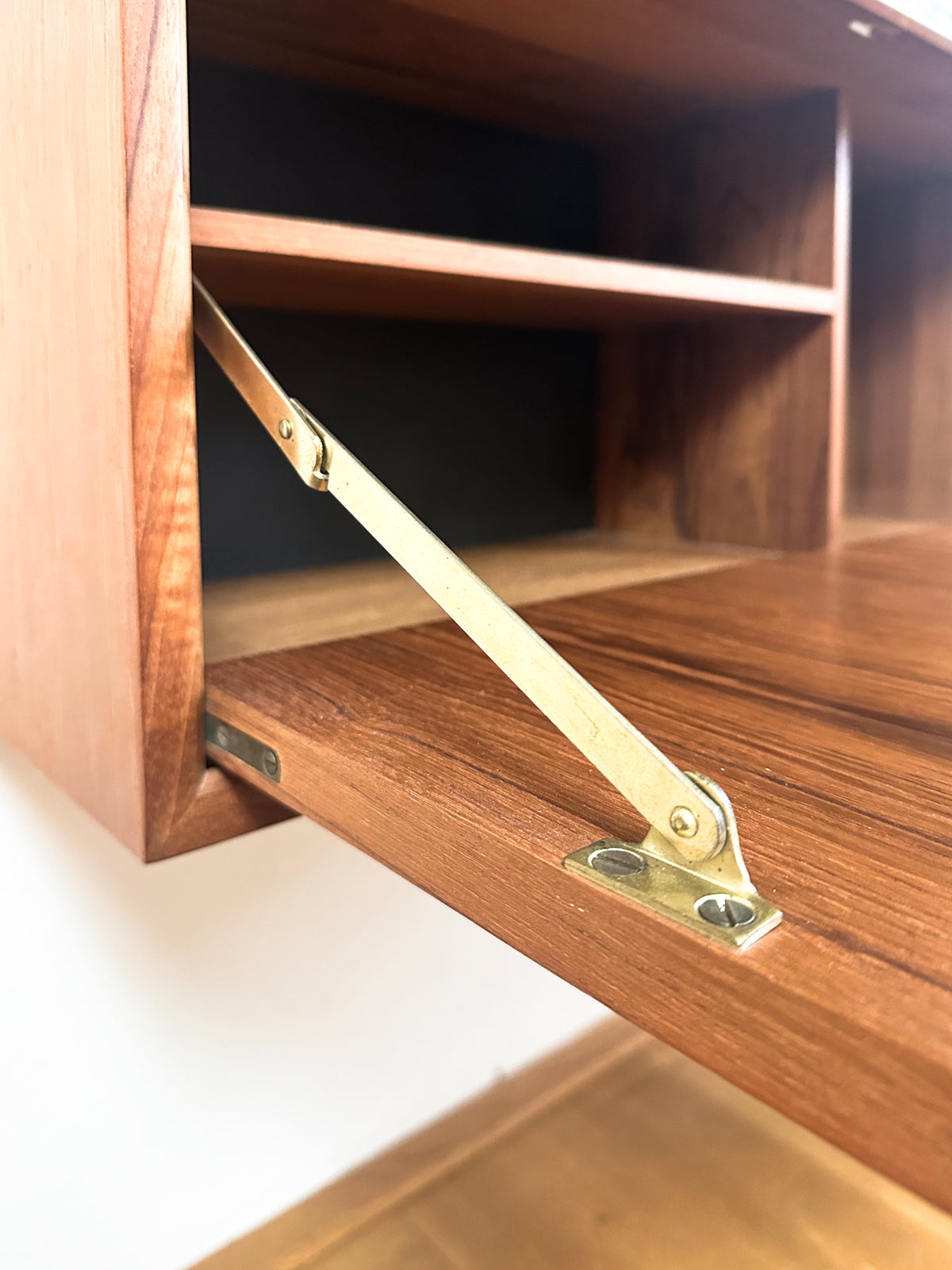 Entworfen in den späten 1940er Jahren, revolutionierte Cadovius mit diesem System die Idee des Wohnens. Statt Möbel, die den Raum dominieren, schuf er ein Konzept, das Wände zum Leben erweckt – luftig, flexibel und elegant zugleich.