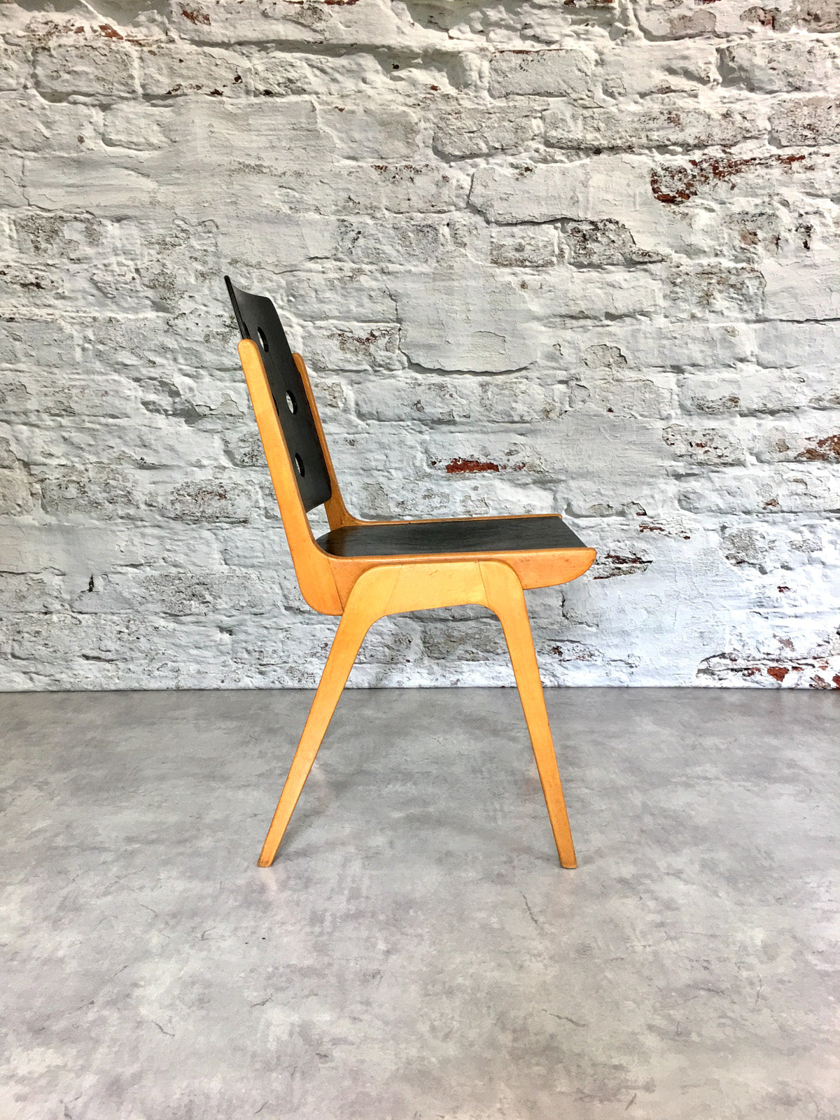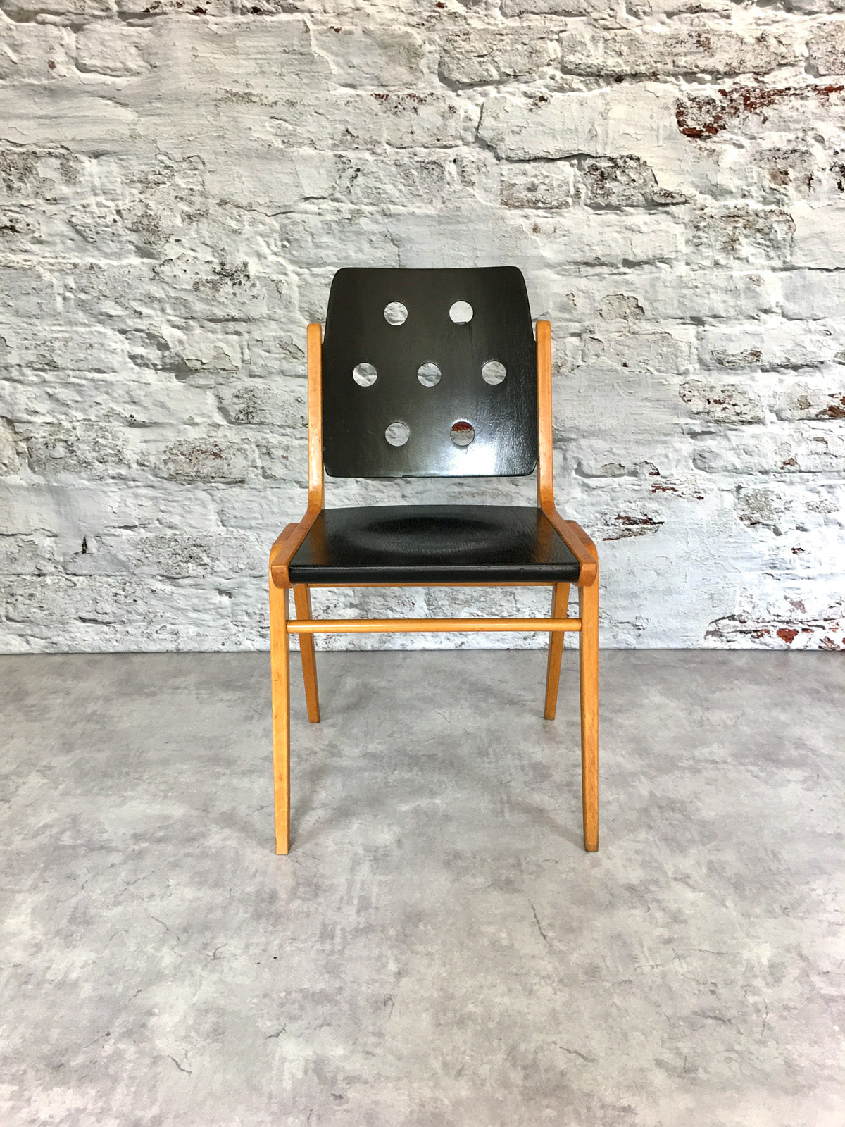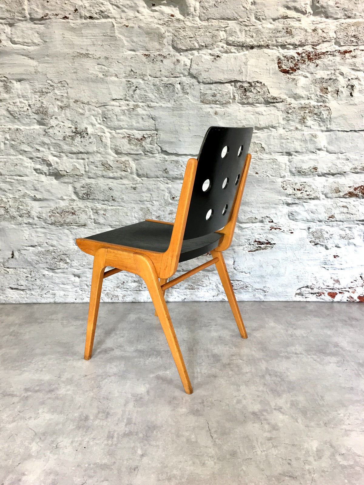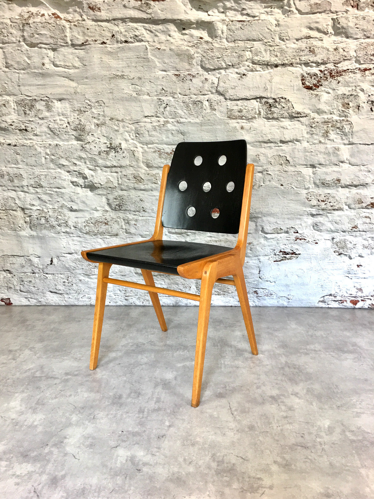 Dieser seltene Sessel (Nr.1) von dem österreichischen Architekten Franz Schuster war ein Zufallsfund. Auf ein Inserat hin besuchte ich ein Pfarrhaus in Oberösterreich, das aufgelassen werden sollte. Erstanden hatte ich ursprünglich einen Nierentisch aus den 50er Jahren. Beim Abholtermin tauchten plötzlich diese wunderbaren Sessel auf, welche sich der Pfarrer damals für seine Privatgemächer ausgesucht hatte. Der Zustand war nach so vielen Jahren nicht mehr der Beste, aber sie waren einfach wundervoll. In unserer Werkstatt wurden die Sessel neu verleimt und die Oberfläche konserviert. Ein seltenes Original im Vintage-Bestzustand, bereit für die nächsten Jahrzehnte.
