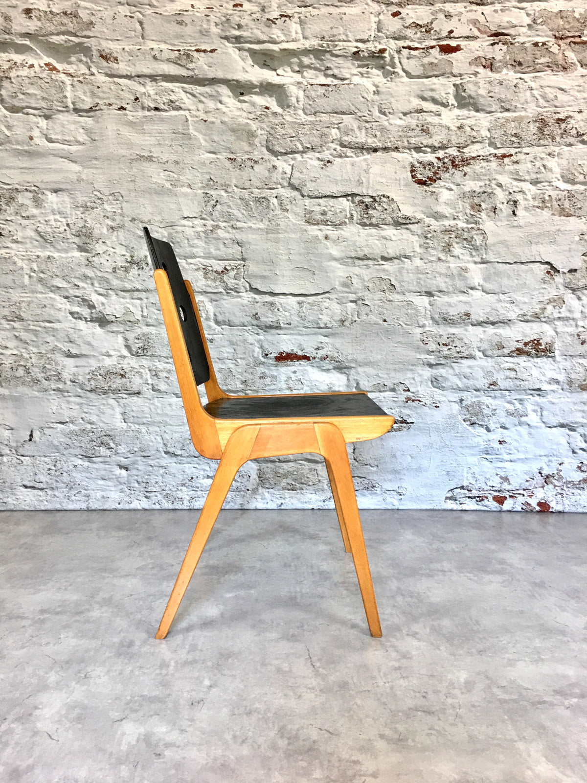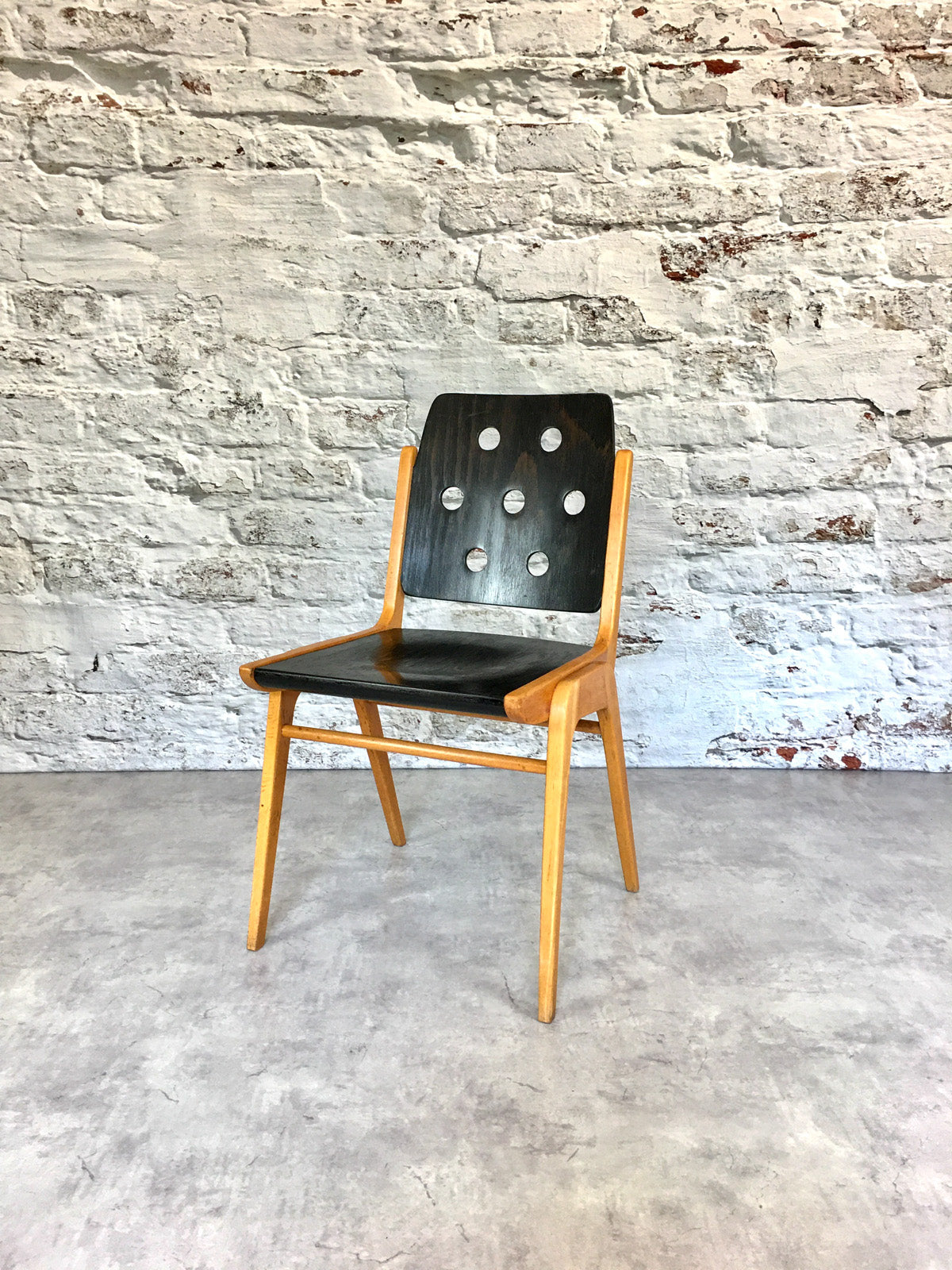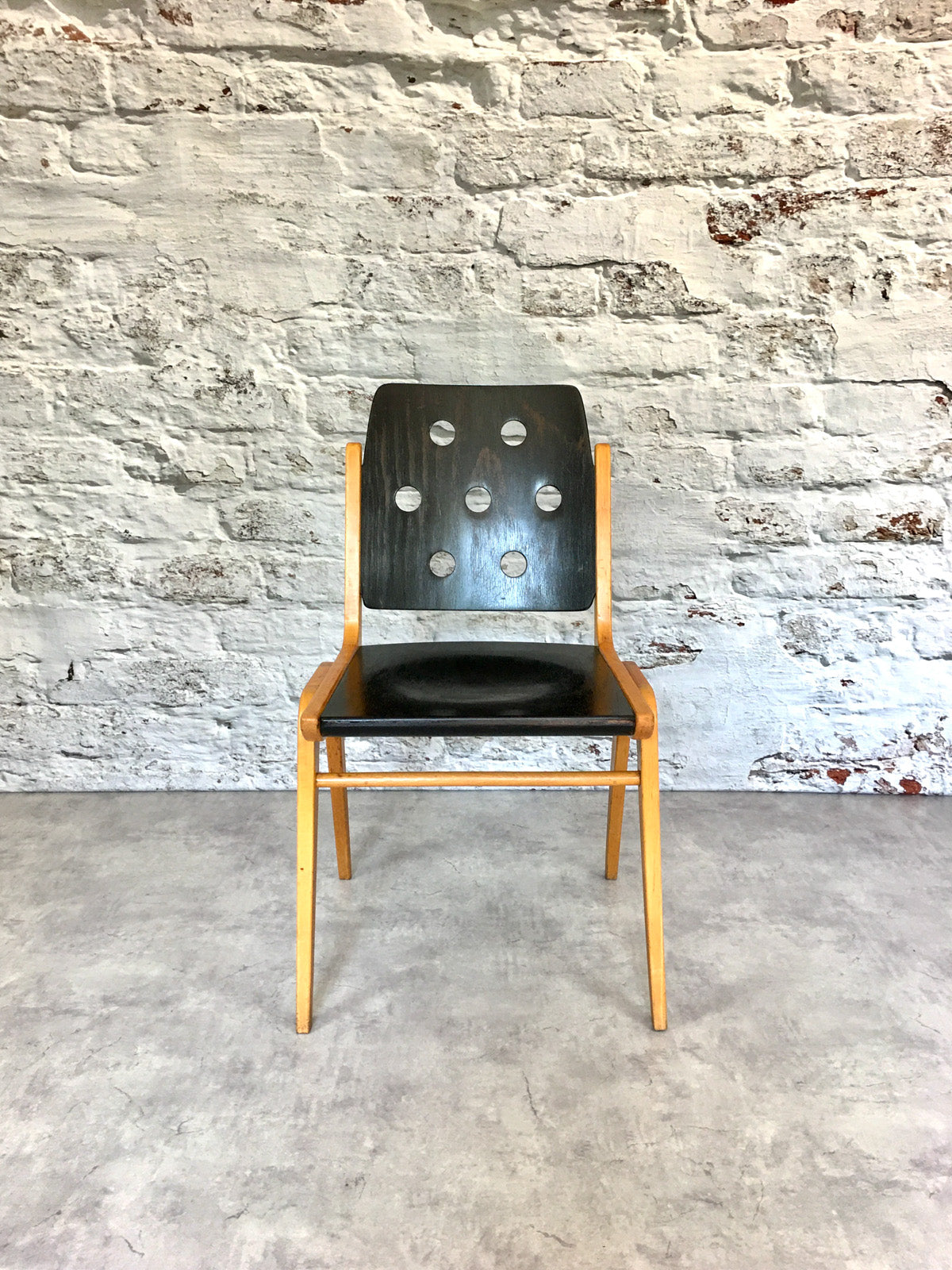 Dieser seltene Sessel (Nr.2) von dem österreichischen Architekten Franz Schuster war ein Zufallsfund. Auf ein Inserat hin besuchte ich ein Pfarrhaus in Oberösterreich, das aufgelassen werden sollte. Erstanden hatte ich ursprünglich einen Nierentisch aus den 50er Jahren. Beim Abholtermin tauchten plötzlich diese wunderbaren Sessel auf, welche sich der Pfarrer damals für seine Privatgemächer ausgesucht hatte. Der Zustand war nach so vielen Jahren nicht mehr der Beste, aber sie waren einfach wundervoll. In unserer Werkstatt wurden die Sessel neu verleimt und die Oberfläche konserviert. Ein seltenes Original im Vintage-Bestzustand, bereit für die nächsten Jahrzehnte.