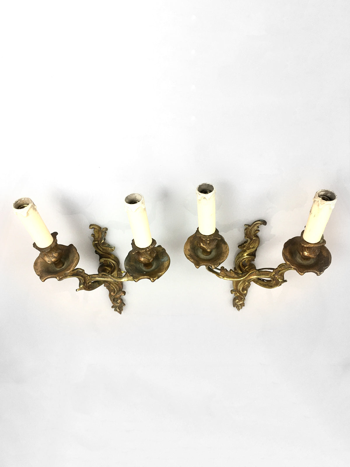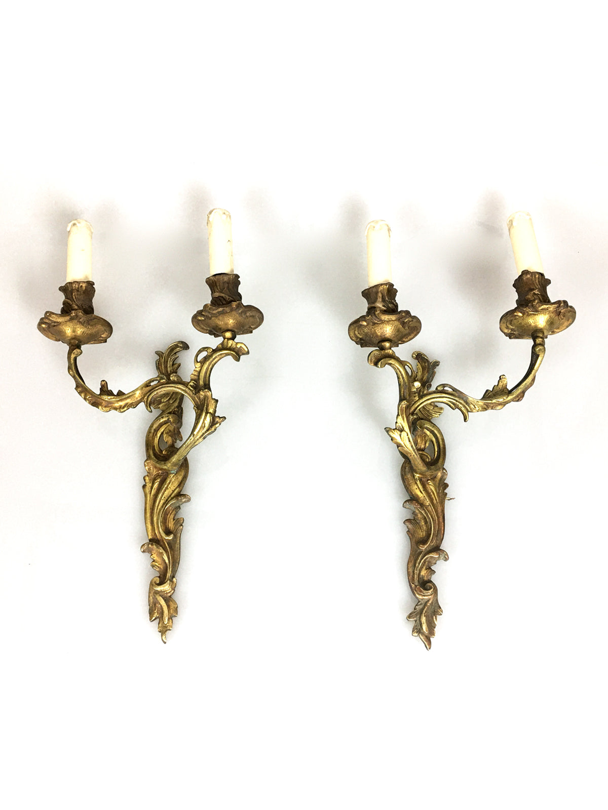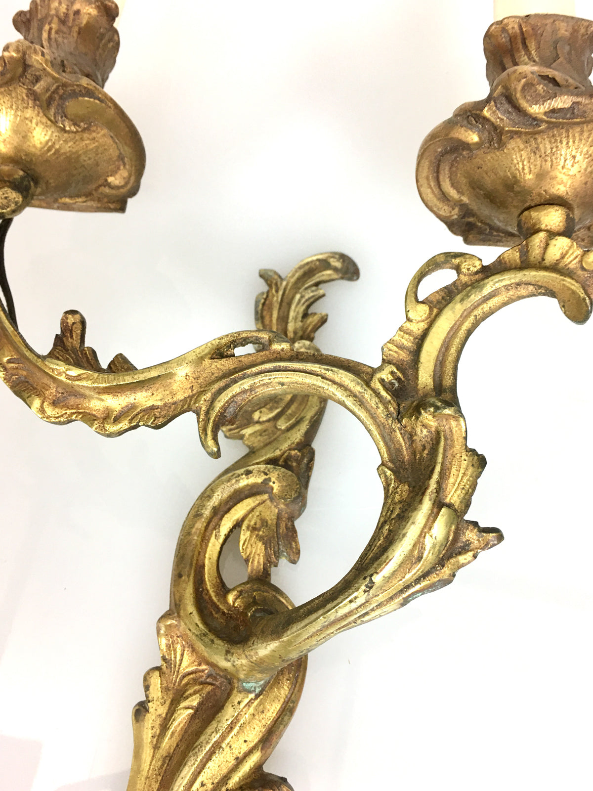 Paar Rokoko Wandappliken Messing, elektrifiziert um 1900